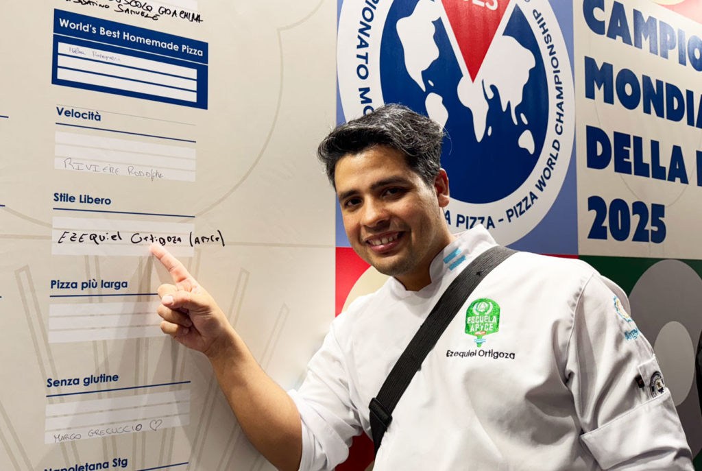 Ortigoza, referente indiscutido de la nueva generación de pizzeros argentinos, comenzó su camino a los 15 años como lavacopas. Con perseverancia, capacitación constante y una pasión incansable, se convirtió en especialista en pizza napolitana y referente en acrobacia a nivel internacional. En 2018, ya había dado que hablar al consagrarse campeón de Acrobacia en la Pizza Expo de Las Vegas.