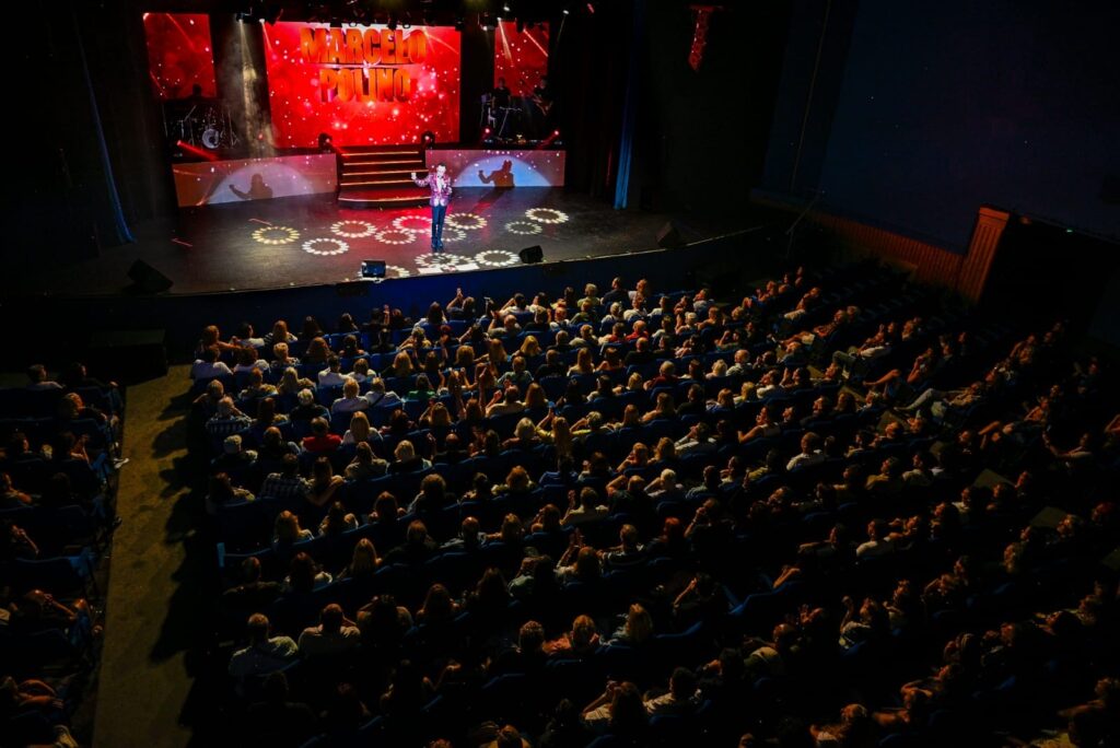 Marcelo Polino acompaña a Fátima en escena con su particular estilo, aportando comentarios de actualidad y humor, y generando dinámicas divertidas con cada personaje interpretado por la artista. El periodista se consolida como parte del ADN del espectáculo, logrando una gran conexión con el público.