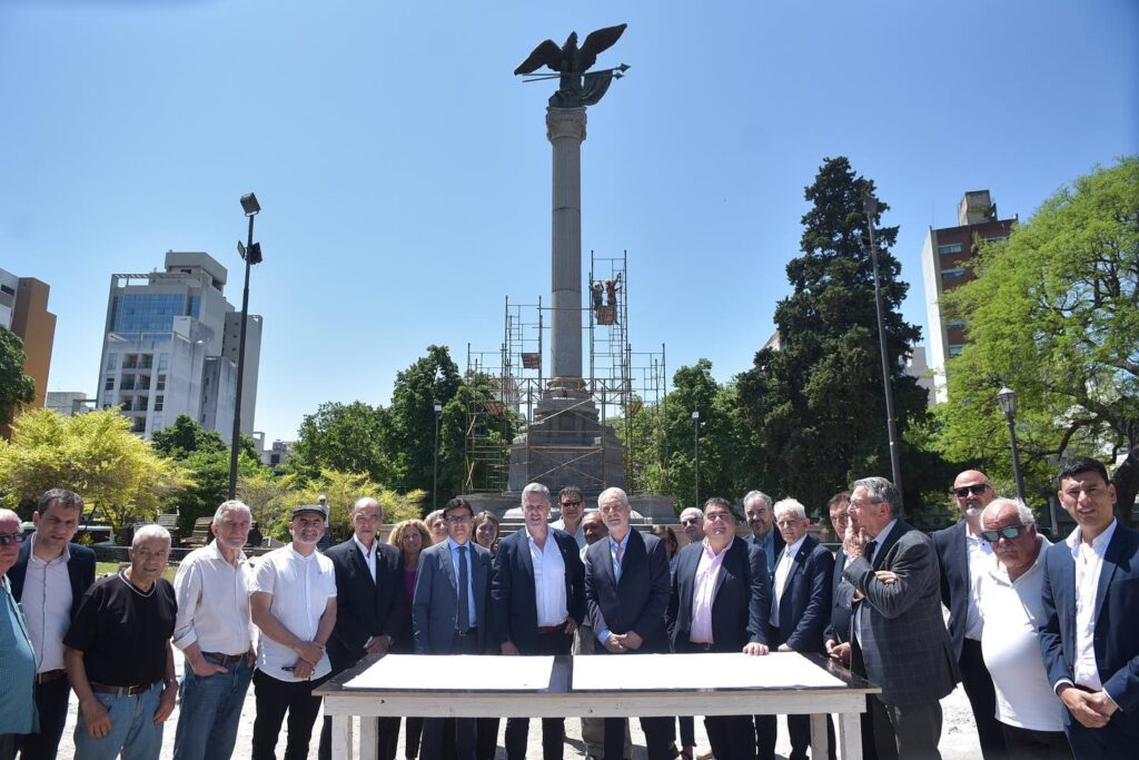 Además, el mandatario explicó que “van a estar los escudos de las diferentes comunidades junto al monumento” y que “el monumento, además, va a tener algo que tenía el fundacional y luego se abandonó con la remodelación y el traslado a uno de los márgenes, que fueron cuatro leones en el perímetro”.