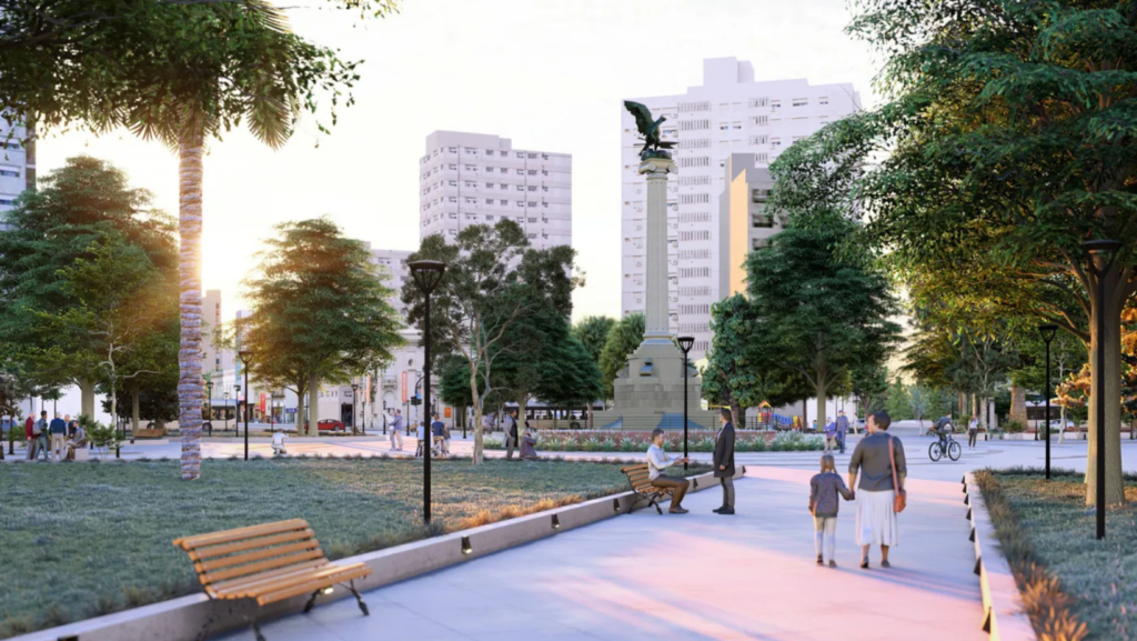 El proyecto también incluye la renovación del solado con baldosas graníticas, el acondicionamiento de los juegos infantiles, la instalación de iluminación y mobiliario urbano y la generación de un paseo peatonal con áreas de estar y esparcimiento en la zona destinada hasta ahora a estacionamiento.