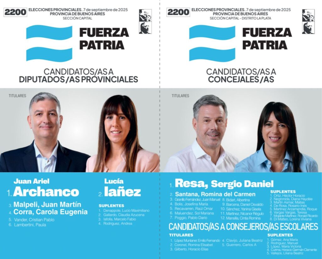 Los vecinos de La Plata encontrarán el próximo domingo en el cuarto oscuro la boleta blanca y celeste de Fuerza Patria, centrada con el logo del partido que representa la bandera argentina.