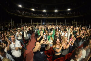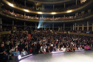 En simultáneo, un numeroso grupo de admiradores se reunió frente al Coliseo Podestá para seguir la clase magistral desde una pantalla especialmente instalada por el Municipio. Allí, el público vivió la experiencia en un clima de alegría, emoción y fervor cinéfilo.
