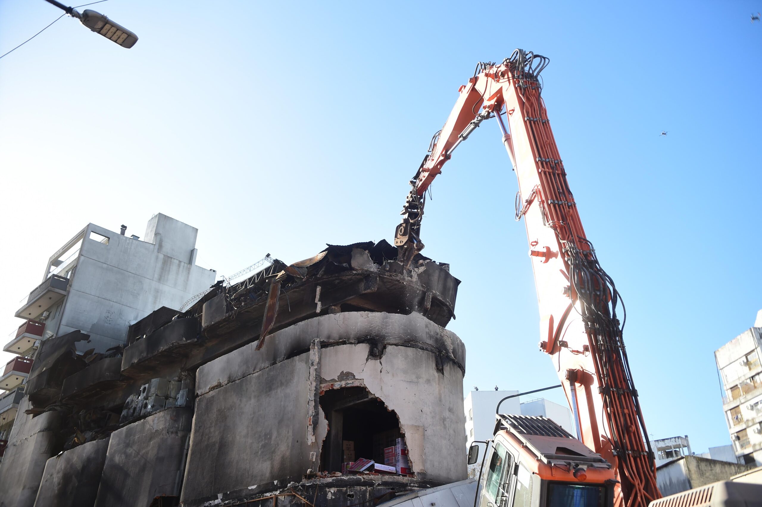 - La demolición es controlada y con descarga progresiva, retirando peso desde arriba hacia abajo para alivianar la estructura.