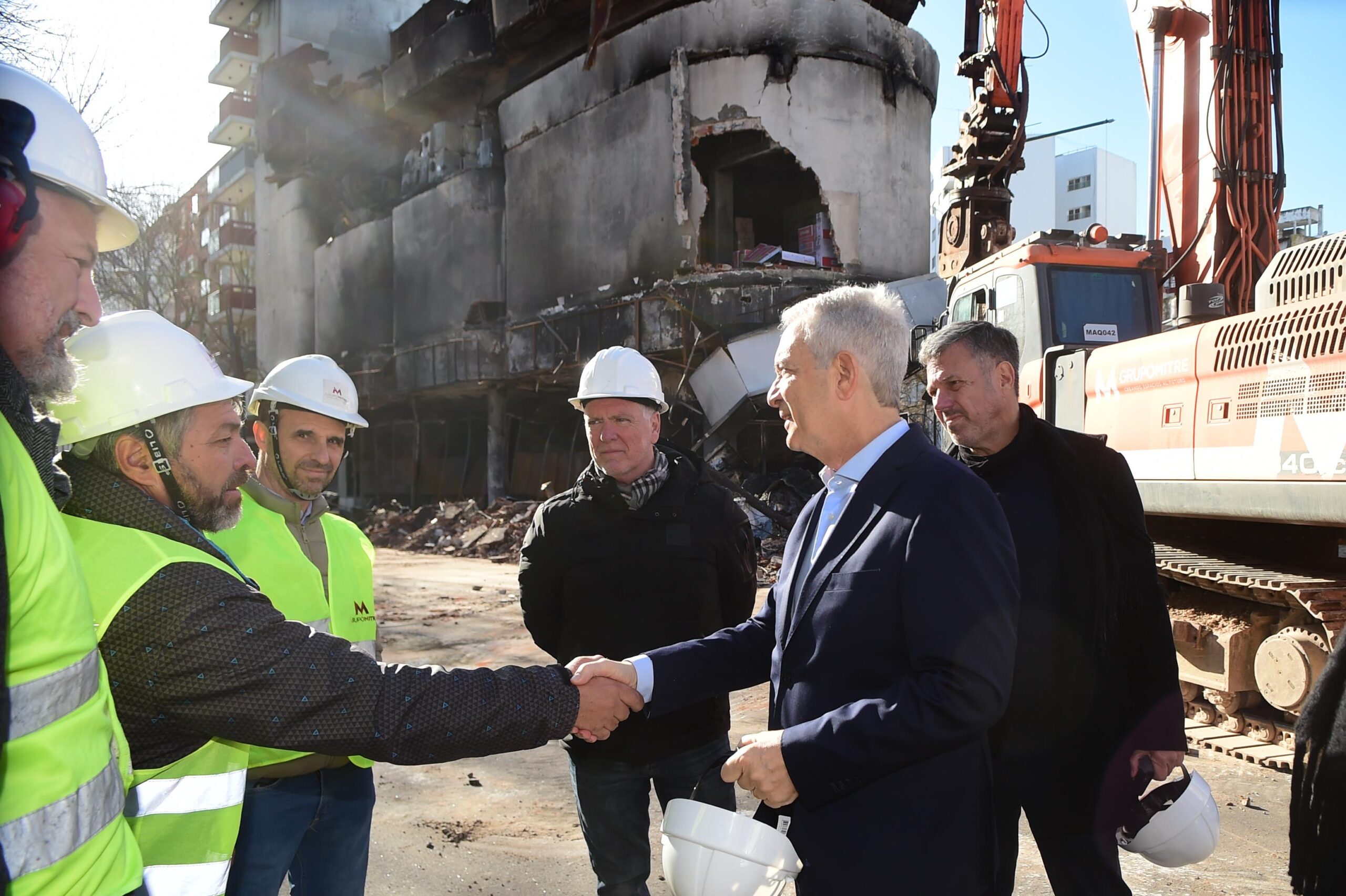 - Se utilizan dos grandes grúas con brazos de 21 metros: una con mordaza, que actúa desde el exterior, y otra con pala, para remover componentes de infraestructura inestables.